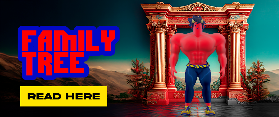 He is super strong, super fast, with red skin, blue hair and two horns. His real name is Nakayokoni Paxonius, but people just call him "Oni, my friend". He doesn’t speak (and it’s not clear if he can or can’t).